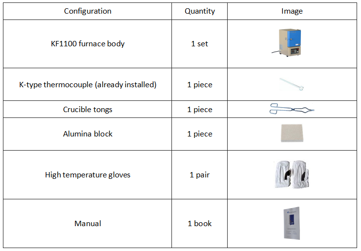 1. For safety, please put the stove in a ventilated place. 2. In order to improve the service life of the furnace, we recommend that the heating rate should not exceed 10°C/min. The cooling rate does not exceed 5°C/min. 3. The furnace has no vacuum tightness, and it is forbidden to pass toxic or explosive gases 4. It is forbidden to put the materials directly on the bricks at the bottom of the furnace, please put the materials in the special crucible. 5. When heating, the materials and crucible should not touch the heating element and thermocouple 6. When not in use for a long time, please use the oven again. |