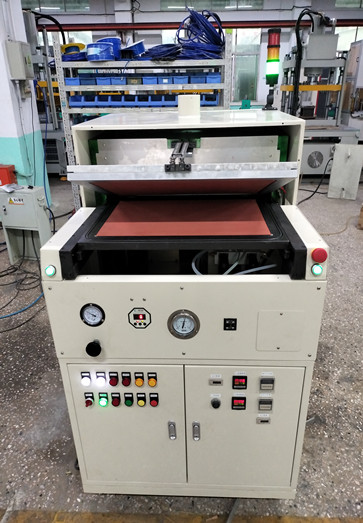 The vacuum hot press for aerogel insulation pads is driven by a precision servo motor and equipped with a PLC microcomputer touch control operating system. It performs vacuum hot pressing on the insulation pads and cools and maintains pressure at the cold pressing station to form them, ensuring comprehensive bonding of the insulation sheets without bubbles or wrinkles. An additional fully automatic heat insulation pad production line is available for selection, integrating functions such as trimming, vulcanization, edge trimming, double-sided gluing, drying, cotton loading, fine cutting, and packaging. The daily production capacity of the production line can reach up to 20,000 pieces.