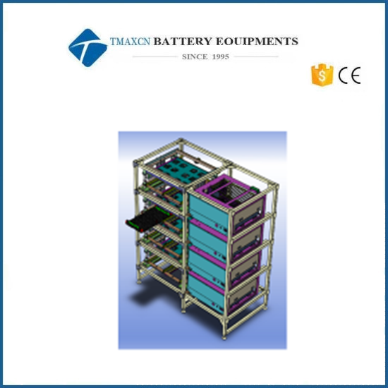 The device is mainly used for the primary charging of super capacitor. The whole machine is composed of a formation unit and a set of pressing machine, in which the formation unit has 16 channels and 1 layer, each layer has a set of press corresponding to it, and each formation unit is composed of 16 channels of 5V 100A. The circuit connection between the battery and the equipment is realized by the probe. The probe is installed on the pressing machine, and the whole tray capacitance is put into the equipment manually. The needle bed mechanism of the device presses the probe and the positive and negative poles of the capacitance through appropriate pressure, so as to realize the fast and reliable connection between the needle bed and the capacitance.