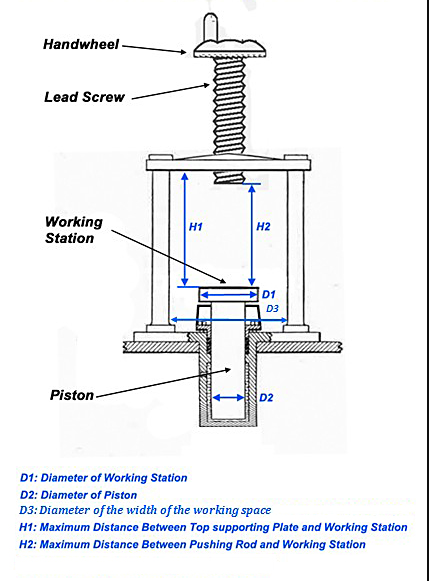 Notes: · Displayed Pressure Value to Actual Applied Force Conversion: 1 MPa = 0.5 Ton · The actual force applied on the Hydraulic Cylinder (Ton) equal to the force applied on your working piece · For calculating the actual pressure (MPa) applied on your working piece, please follow the equations in below: