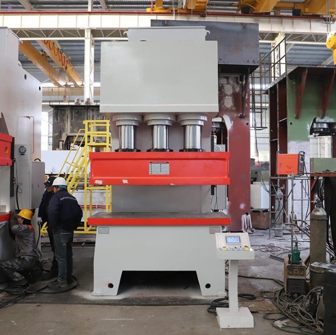 The 500-ton single-arm hydraulic press, also known as the 500-ton single column oil press or 500-ton single-column press, is a custom-made model. The machine body adopts a C-shaped single-arm structure and is welded by submerged arc welding. After welding, it undergoes vibration treatment to ensure the quality of the machine