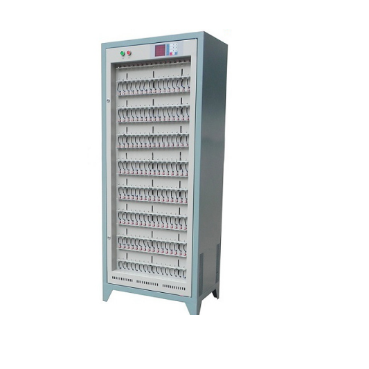 This equipment is mainly composed of the computer system, communication interface, control software, and battery detecting cabinet. Battery detecting cabinet comprises a fixture and placed the plate body of the fixture, charging, constant current and constant voltage source discharge constant current source, storage control circuit, current sampling circuit, voltage sampling circuit, the main control CPU, data memory, microcontroller programming and control panel.