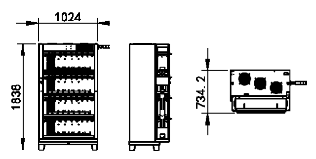 Dimensions: Length × Width × Height = 1024 mm × 734 mm × 1840 mm