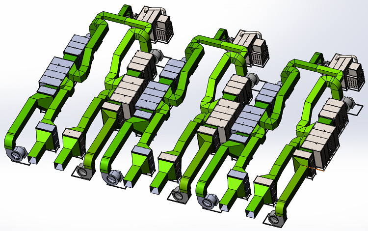 The processing air volume of the NMP rotary processing device (adsorption and desorption processing air cabinet) shall not be less than 10% of the total exhaust air volume of the system. The design and selection of the equipment and combined accessories should meet the following requirements: