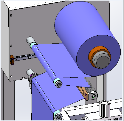 The blue film unwinds through the tension mechanism to realize stable film unwinding