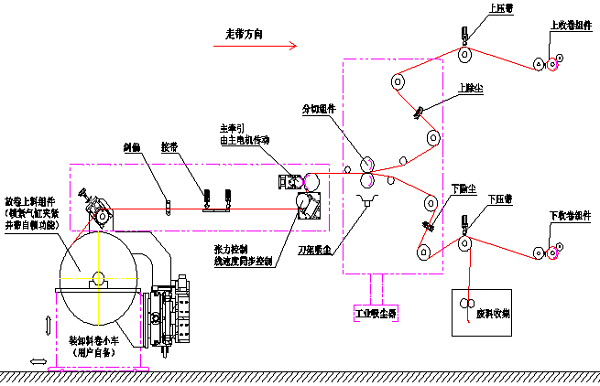 Mechanism composition: the main components of slitting are divided into unwinding mechanism, deviation correction mechanism, belt connecting platform, traction mechanism, slitting mechanism, powder brushing and dust removal mechanism, tracking roller mechanism, tablet pressing mechanism, roller pressing mechanism and winding mechanism.
