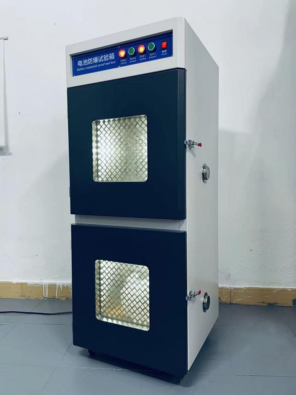 This test machine is primarily used for overcharge and overdischarge tests on batteries during charge and discharge testing. The battery is placed inside an explosion-proof box, which is connected to an external charge and discharge testing device, providing protection for both the operators and the instruments.