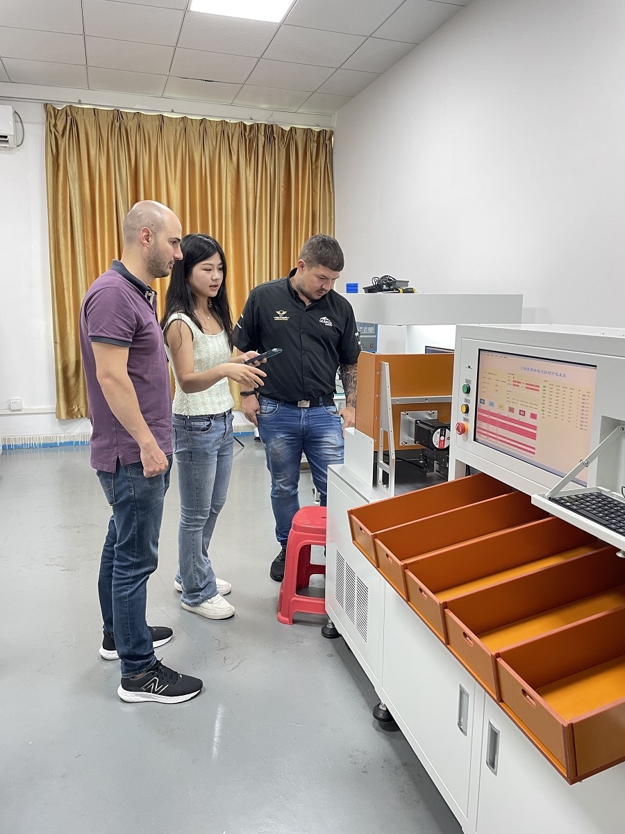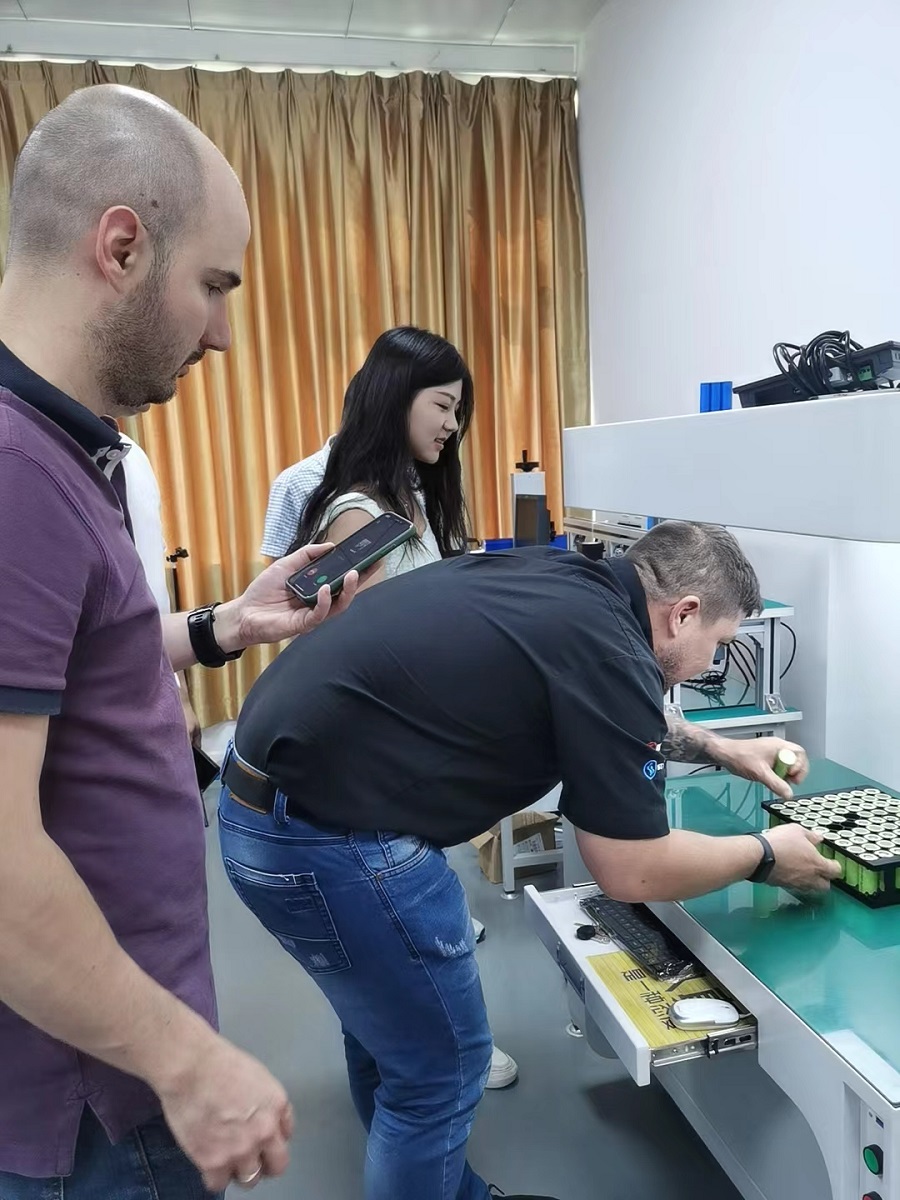 During the visit, our focus was on showcasing the advanced machinery. The highlights included:Battery Sorting Machine: This machine excels in efficiently sorting lithium batteries based on their varying internal resistance values. Its high precision and speed contribute to enhanced production efficiency and streamlined operations.