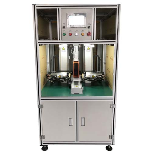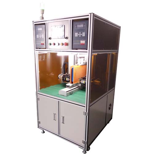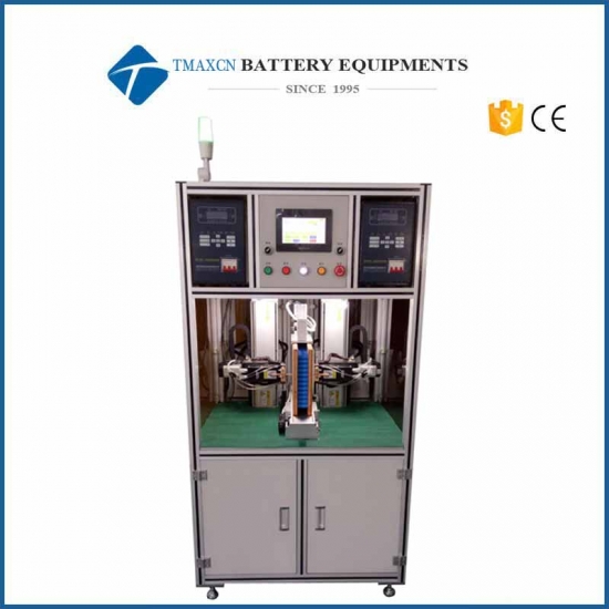 This machine is used for cylindrical battery pack automatic spot welding, it can weld both side together with high speed and good effect.