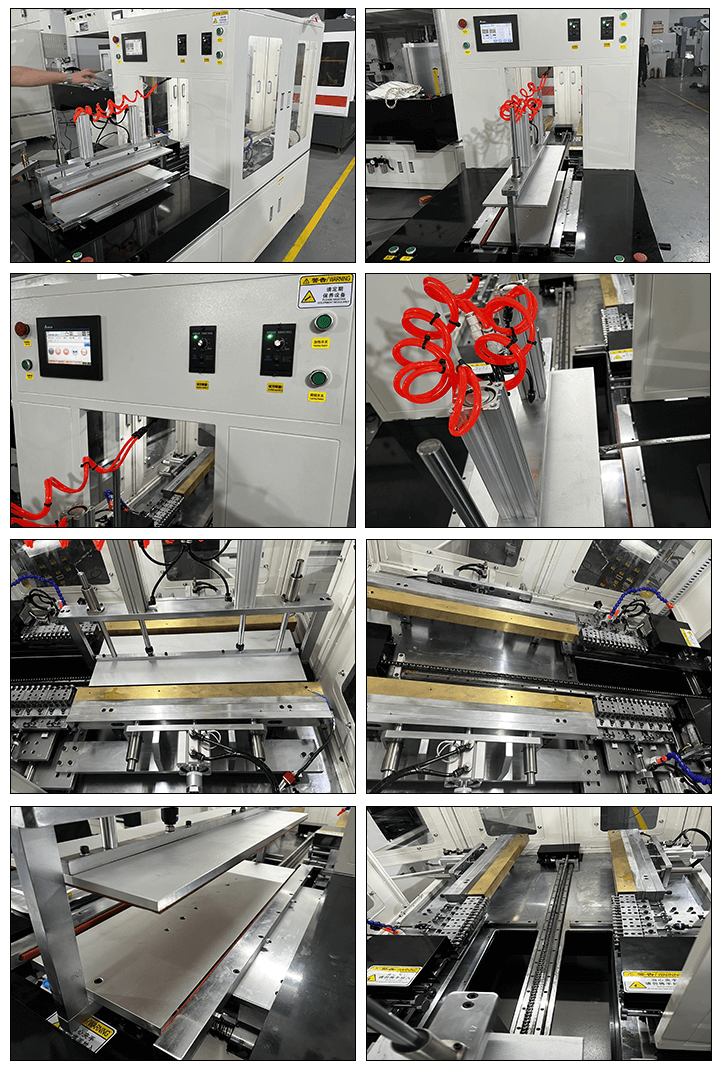 · Continuous workflow for edge trimming, folding and ironing of extra large pouch cell cases (manual cases loading is needed) · Linear sliding rail for easy manipulation of trimming, folding and ironing modules.