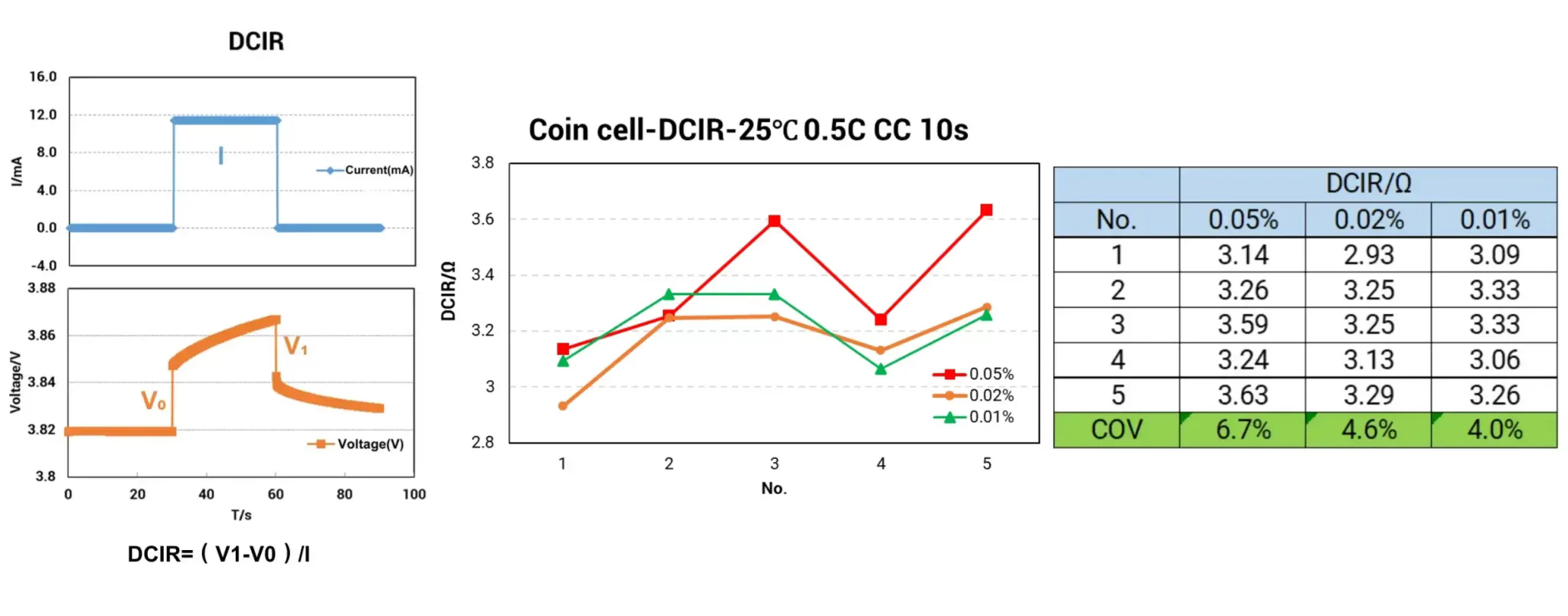 2) The results demonstrated that higher voltage accuracy yields better consistency in the DCIR of coin cells.