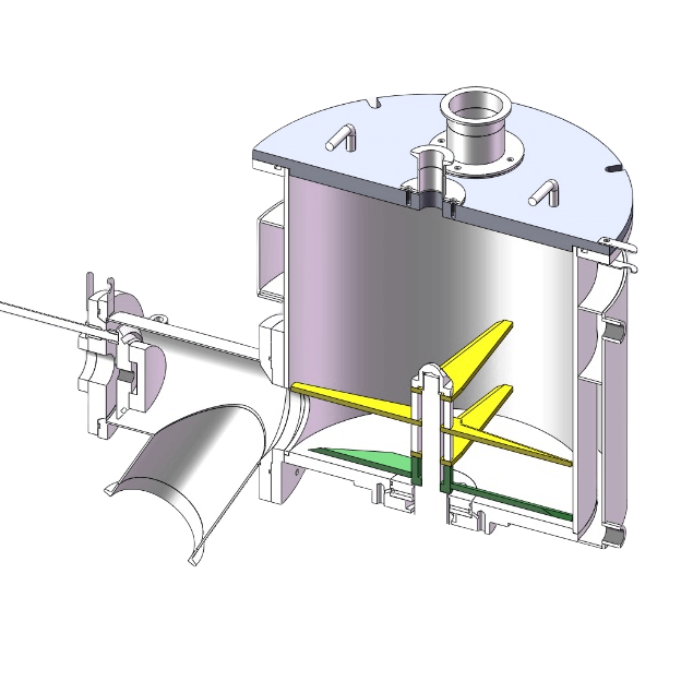 When the bottom flipping blade of the mixing tank rotates, a parabolic airflow is generated from the center to the surrounding area. At the same time, the blade rotation and groove wall also generate a curved airflow. The two airflow interact to cause the powder in the tank to rotate and be evenly dispersed, mixed, and combined with the use of binders, achieving the function of coating granulation.