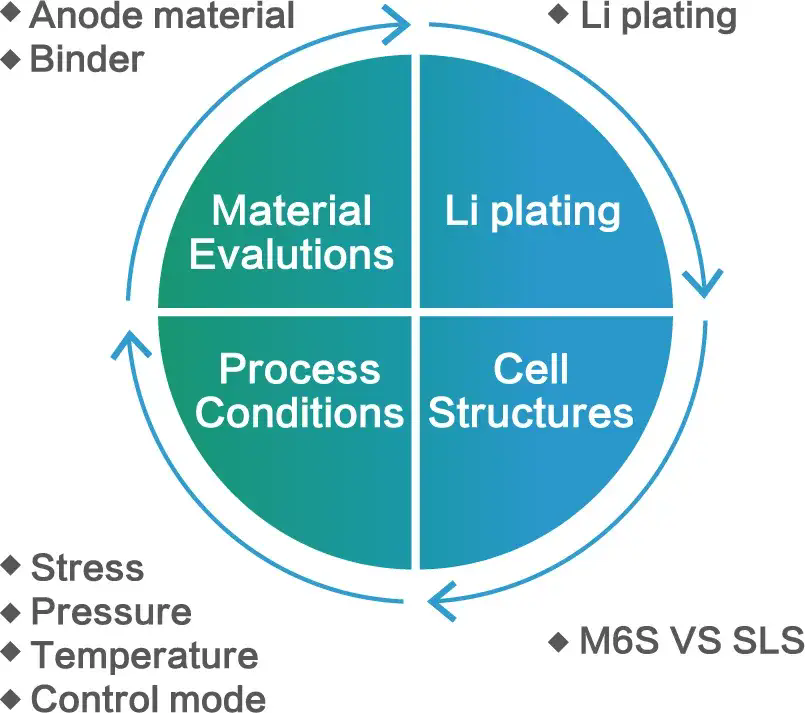 4) Non in-site Test: Only the thickness data on several specific states can be acquired, the swelling behavior of cells cannot be described systemically; Big Deviation for lithium plating window assessment: Not every lithium plating SOC and potential in different rate can be quantified.