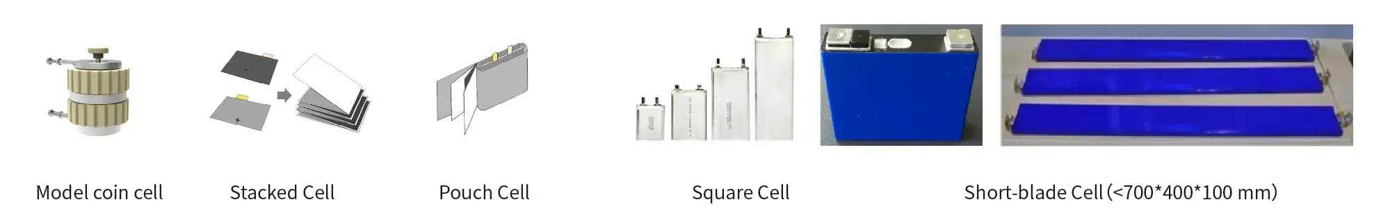 2. Multi-Level Expansion Testing: Electrodes, Coin Cell, Pouch Cell, Prismatic cell, Short-blade Cell