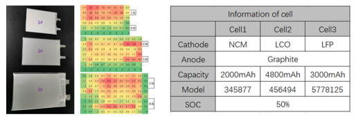Test information: NCM-Graphite system, 3~4.3V, 0.5C, 50kg preload;
