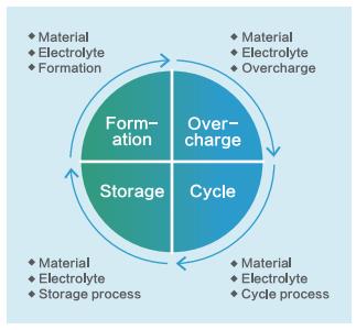 During long-term storage or cycling, lithium-ion batteries will slowly undergo side reactions and produce gas, especially under high temperature conditions, which are more likely to occur. This is a very critical reliability issue for lithium-ion batteries.