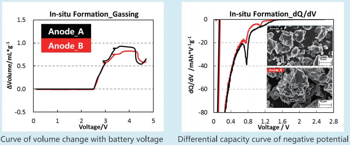 The additives in the electrolyte have a great influence on the SEI film formation reaction of the cell formation stage. By comparing the changes in the gas production volume and gas production rate of the cell formation by the electrolyte with different additives, the effect of the additive on the cell formation is quickly evaluated. The influence of the formation process, combined with the three-electrode formation curve, helps to improve the electrolyte formulation in a targeted manner.