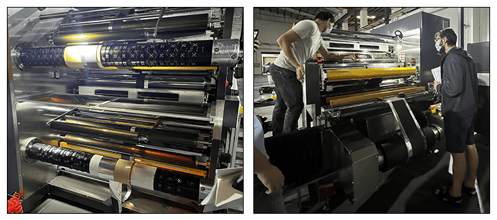 Manually load the material to the unwinding top cone→Jog operation equipment→Manually feed the material to the slitting knife for pre-splitting→Pass the pre-slit electrode sheets through the brush and tension roller to the winding shaft→Install the winding tube on the differential shaft→Fix the electrode sheet on the winding tube with tape→Set the required initial tension for unwinding and rewinding→Convert the correction system to automatic mode→Press the start button→The equipment will automatically cut and collect in rolls.
