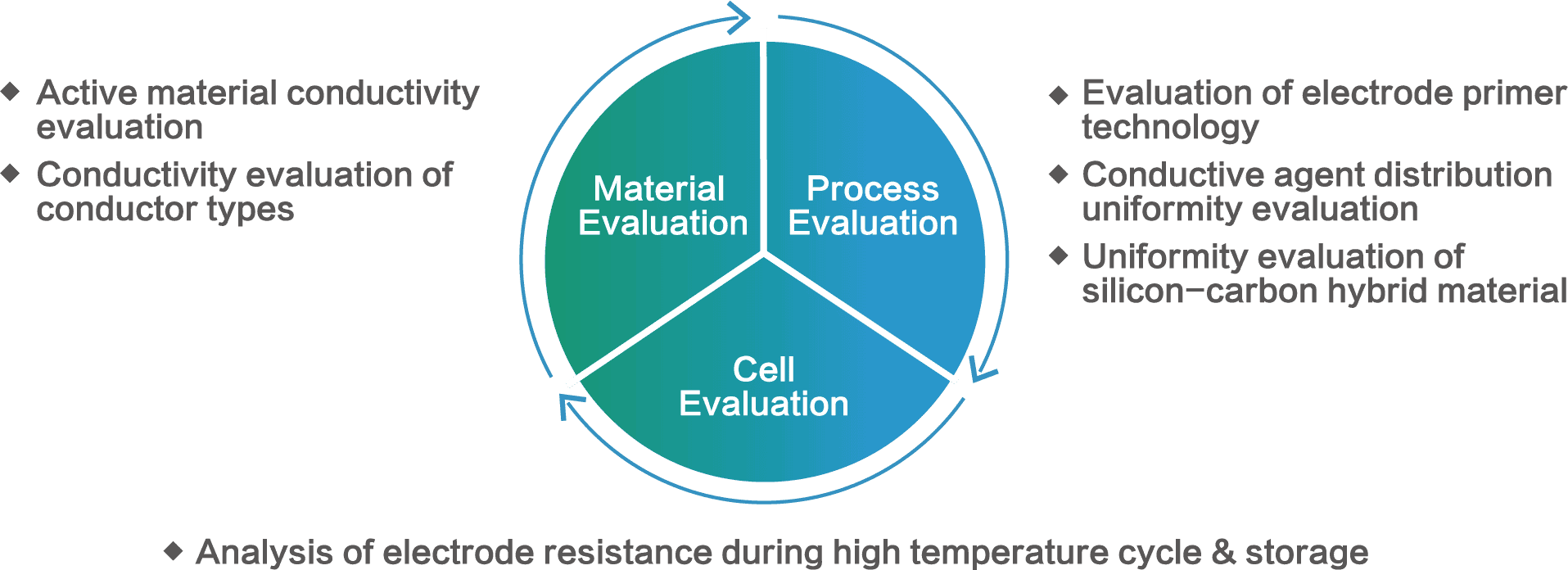7) Analysis of interface resistance of the cathode or andode electrode after formation.