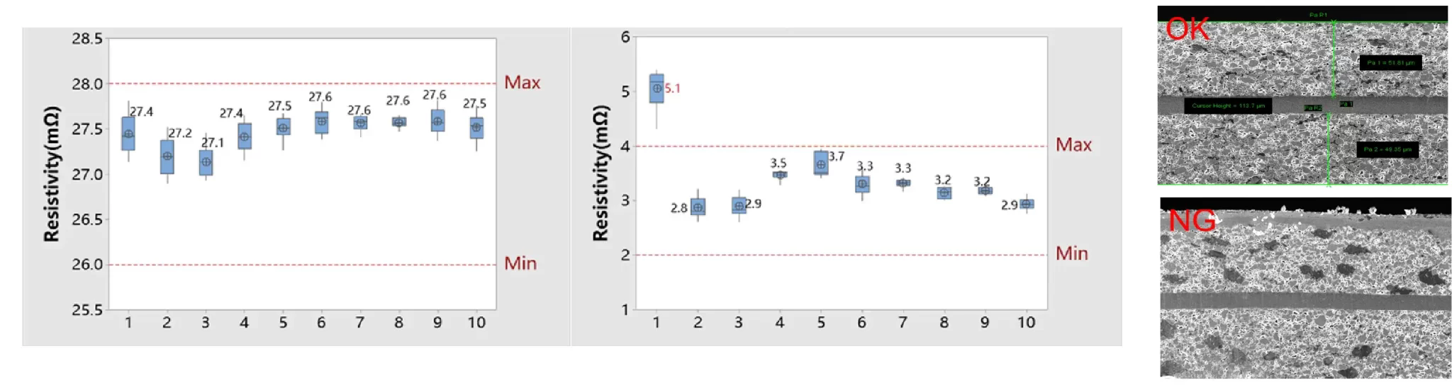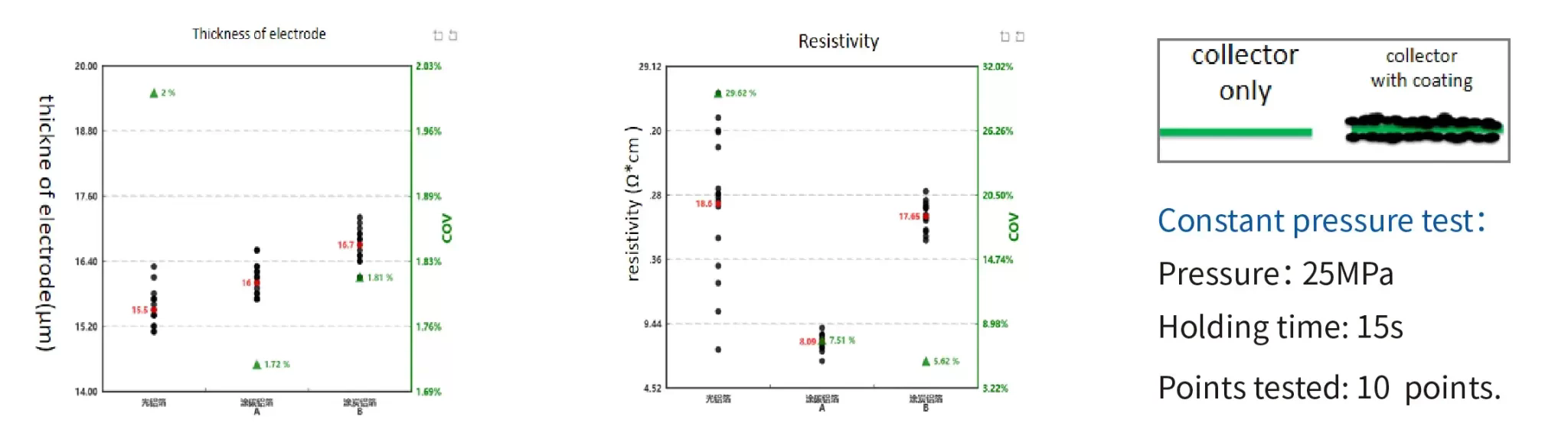 2) After coating 1~2µm primer material on the aluminum foil, the conductivity uniformity of the current collector is better.