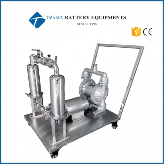After the mixing process is completed, the ball valve is opened, and the slurry flows into the filter through the pipe. The filter can be selected in two groups, and the double-layer filter (optional). The filtered slurry enters the iron removal chamber and is then transported by a diaphragm pump to a cotter for coating.