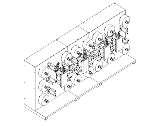 Independent PP film unwinding mechanism for double-sided lithium coating on copper foil strips. PP film used as a protective layer between each layer during lamination. |