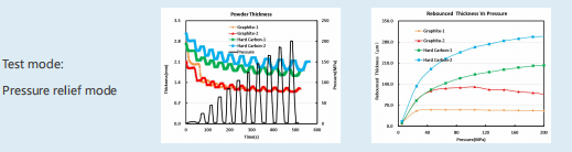 Result analysis: The results show that the thickness rebound of graphite and carbon materials during the process of pressurization and decompression are different, and the rebound of graphite material is greater than that of hard carbon.