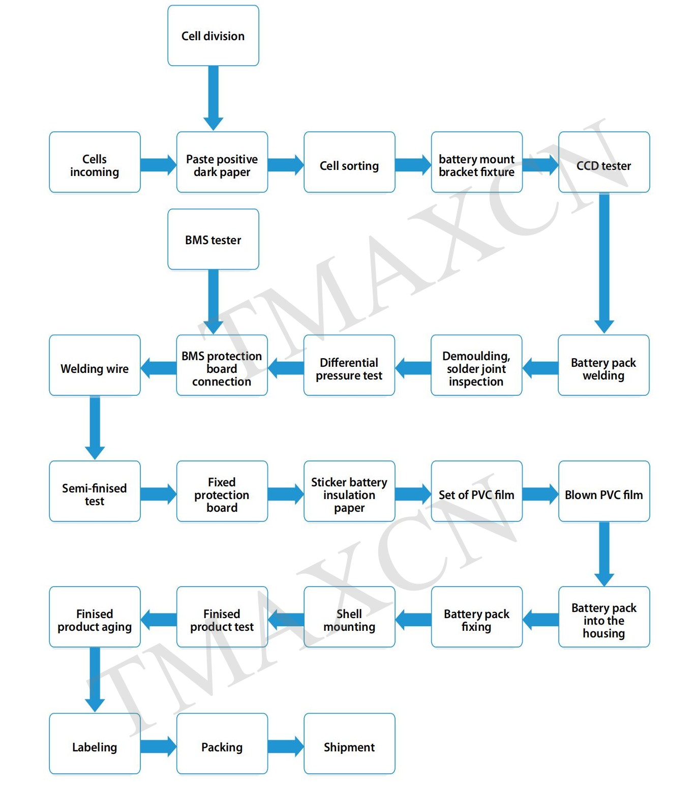 Detailed flowchart for Li-ion battery pack assembling with Cylindrical cells