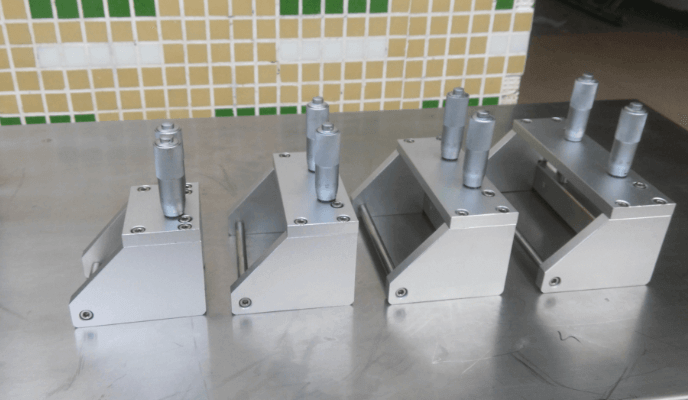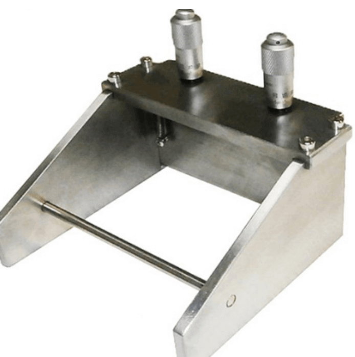 2. The operator sets the blade clearance by adjusting the micrometers. This is