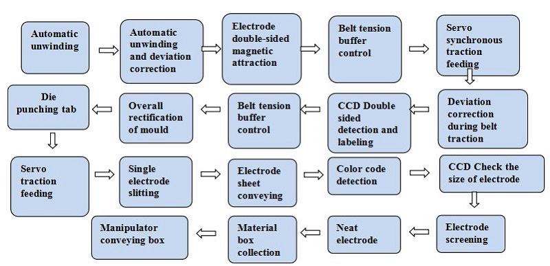 * single electrode conveying function (three vacuum belts are used to convey the electrode, dust removal on both sides of the electrode and screening of defective products are carried out during the conveying process);