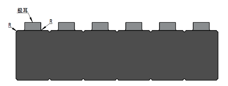 * the metal concave convex die is used to complete the forming of the pole ear (tungsten steel die is used, with high service life and small punching Burr);