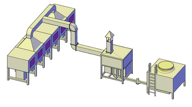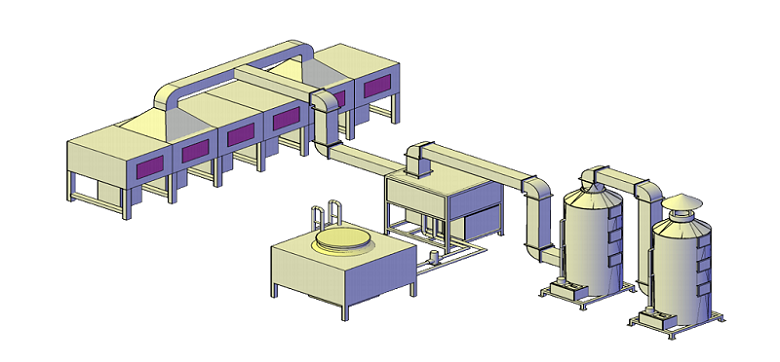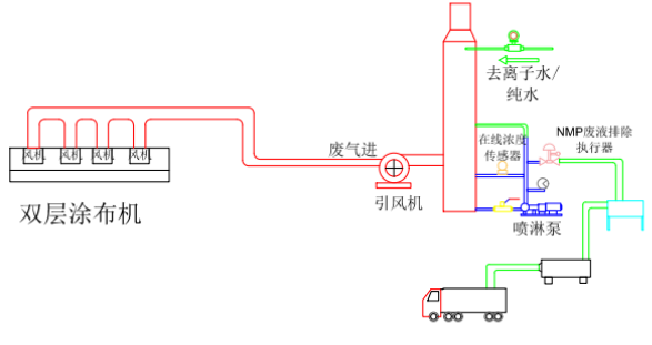 Purpose and Main Composition: Mainly used to absorb NMP gas discharged from the outside, it mainly consists of an absorption tower, magnetic pump, fan, liquid concentration detector, regulating valve, regular packing, mist eliminator, etc.
