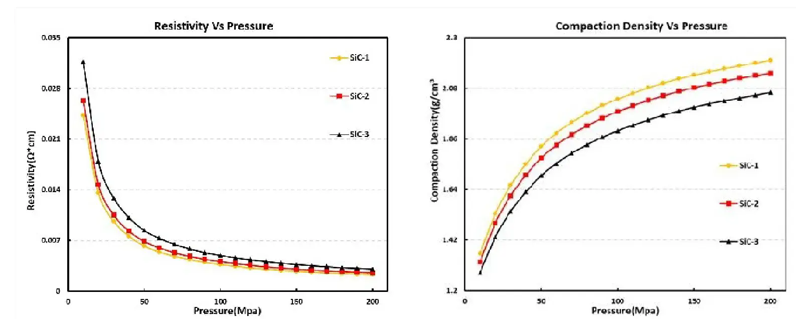 2) Compaction density: Sic-1>SiC-2> Sic-3