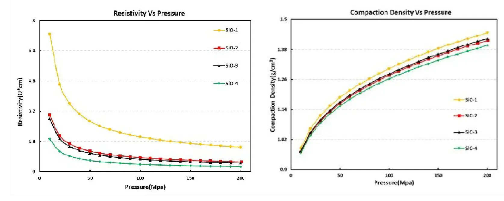 Compaction density:Sic-l>Si0-2>Si0-3>Si0-4