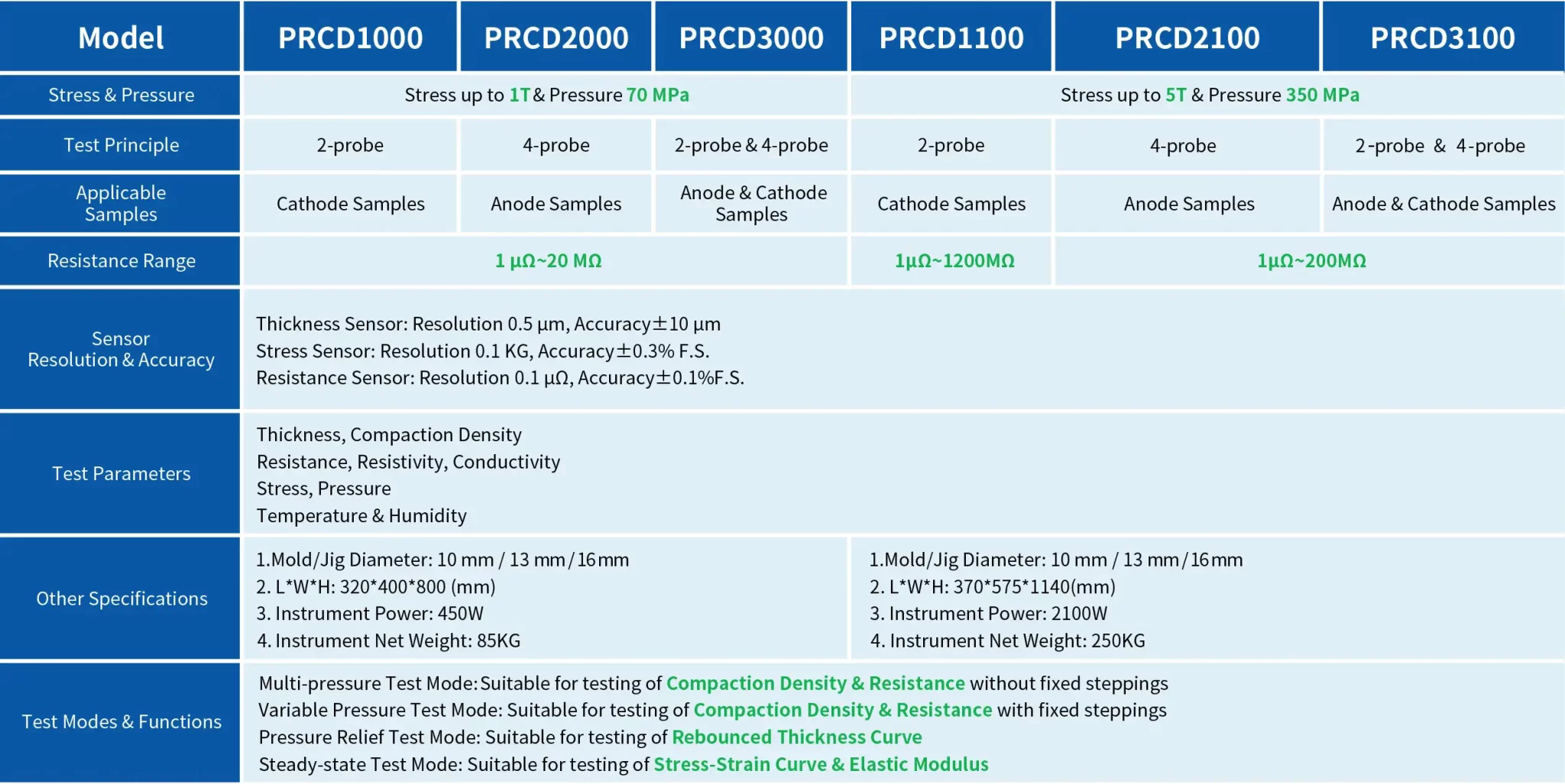 TMAX-PRCD3100 combined with high-precision pressure control,thickness and resistance testing system, free choice of four-probe and two-probe method. Accurately test the resistivity and compaction density of powders for material research and development and batch stability monitoring of powder materials.