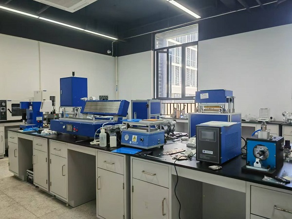 The equipment includes a roll to roll roller press, vacuum planetary mixing machine, heated coating machine, electrode die-cutter, manual stacker, aluminum-laminated film forming machine, top and side heat sealer, Dispenser, vacuum diffusion and degassing chamber, vacuum pre-sealing machine, final sealing machine, and glove box.