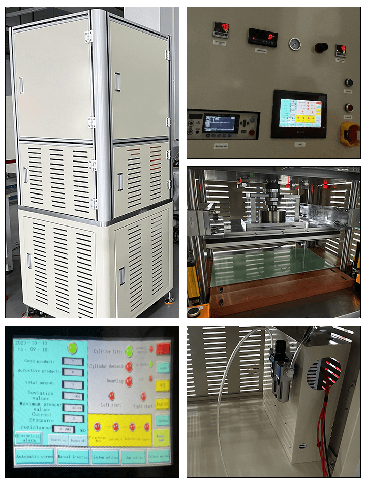 3.Booster cylinder make the up and down mould press on the battery, and transports the heat